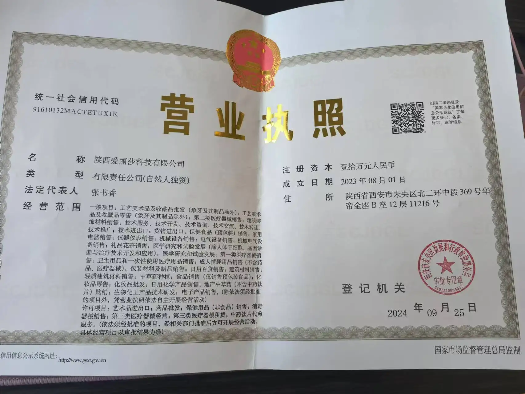 Registered address : Room 01, Floor 2, Building 2, No. 4955 Shangyuan Road, Caotan Ecological Industrial Park, Xi 'an Economic and Technological Development Zone, Shaanxi Province Xian Shaanxi China